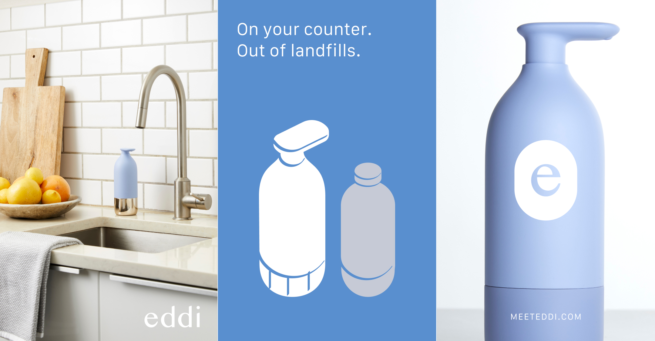 Hello. We’re Eddi. We seek to make the everyday extraordinary, with timeless homeware that considers our habitat, as well as your home. Neat products that maximize delight and minimize waste, designed to clean up your countertop and let you live more sustainably. Because we know that upgrading the small moments can make a big difference, we made it our mission to dispense a little joy into the way we wash up. Crafted with thoughtful details that make every interaction a little more interesting, Eddi gives you a delightful reason to roll up your sleeves. And we think that’s pretty neat.